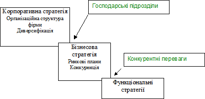 Корпоративний, бізнесовий та функціональний рівень стратегії