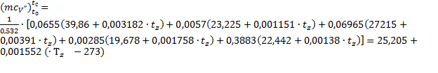 Средняя мольная теплоемкость продуктов сгорания: