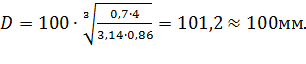 Определяем диаметр цилиндра. Так как ход поршня предварительно был принят S=86 мм, то: