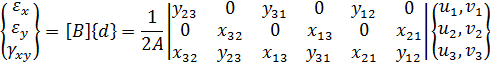 Разрешающие уравнения МКЭ. Линейный плоский треугольный элемент. Позволяет апроксимировать геометрические области любой формы. Каждый узел имеет две степени свободы. Смещение