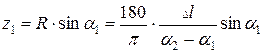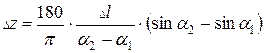 Довжину кривої по осі свердловини між точками заміру визначають за формулою: