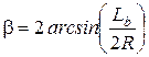 - по криволинейному участку. Здесь и далее b - центральный угол вагона, определяемый из условия (рис.3),