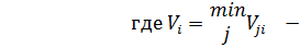j i Если в исходной матрице по условию задачи результат Vij представляет выигрыш (полезность) лица, принимающего решение, то при выборе оптимальной стратегии используется максиминный критерий. Для определения оптимальной стратегии Rj в каждой строке матрицы результатов находят наименьший элемент min {Vij}, а затем выбирается действие Rj (строка j), которому будут соответствовать наибольшие элементы из этих наименьших элементов, т. е. действие, определяющее результат, равный