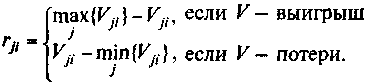 Если матрица возможных результатов ||Vji|| представляет собой матрицу потерь (затрат), то элементы матрицы рисков ||rji|| следует определять по формуле