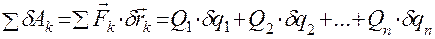 Если система имеет n степеней свободы, то у неё n обобщённых координат, независимых друг от друга (q1, q2, …, qn) и n возможных перемещений (δq1, δq2, …, δqn). Сумма элементарных работ, приложенных к системе сил, на возможные перемещения системы равна