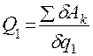 Обобщёнными силами называются коэффициенты, стоящие перед соответственными возможными перемещениями. Так как обобщённые координаты не зависят друг от друга, то для определения обобщённой силы системе необходимо сообщить возможные перемещения, соответствующие координатам, а все остальные возможные перемещения принять за нуль, то есть для определения Q1 необходимо, чтобы δq1 ≠ 0, δq2 = 0, δq3 = 0, …, δqn = 0, тогда