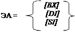 Обозначение имени регистра в квадратных скобках указывает на содержимое соответствующего регистра. Фигурные скобки – символ выбора одной из нескольких возможных альтернатив. При регистровой относительной адресации эффективный адрес равен сумме содержимого базового или индексного регистра и смещения: