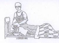 Для мытья ног больного в постели: вымойте руки, высушите, наденьте перчатки; закатайте валиком матрас под колени пациента; постелите клеенку, поставьте таз с тёплой водой на кровать; вымойте в тазу ноги больного с помощью индивидуальной губки и мыла; вытрите ноги полотенцем; при необходимости пациенту подстригите ногти на ногах. Ногти стригите прямо, во избежание врастания ногтя в мягкие ткани пальцев ног; продезинфицируйте ножницы; уберите все предметы для мытья ног; снимите перчатки, вымойте и осушите руки.