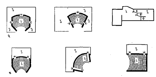 3.9. Распределительный вестибюль рекомендуется проектировать так, чтобы движение входящей публики осуществлялось без встречных и пересекающихся потоков, особенно потоков зрителей в верхней одежде и без нее. При расположении распределительного вестибюля смежно и в одном уровне с фойе и кулуарами возможно перераспределение площади этих помещений, при этом не рекомендуется уменьшать площадь распределительного вестибюля более, чем на 30%. В распределительном вестибюле желательно предусматривать банкетки и кресла из расчета на одновременное пользование 7—10% зрителей. Комнату для переодевания при распределительном вестибюле рекомендуется оснащать зеркалами с подзеркальниками и светильниками с индивидуальными банкетками из расчета на единовременное пользование 2% зрителей. При наличии комнаты для переодевания количество мест для раздевания в распределительном вестибюле может быть соответственно уменьшено. 3.10. Гардеробная в распределительном вестибюле может рассредотачиваться в нескольких местах или размещаться в одном месте, располагаясь у стен или островным способом. Глубина гардеробной от барьера до стены рекомендуется не более 4 м, высота у стен — не менее 2,1 м, над барьером не менее 2,4 м. Ширина прохода перед барьером принимается не менее 3 м, между барьерами — не менее 6 м. Длину барьера гардеробной рекомендуется определять из расчета 1 м не более, чем на 30 зрителей. Вешалки в гардеробной проектируются консольными, подвесными или стоящими на полу (рис. 6, I). При проектировании рассредоточенной в нескольких местах гардеробной емкость каждого участка рекомендуется проектировать кратной 100-120 крючкам.