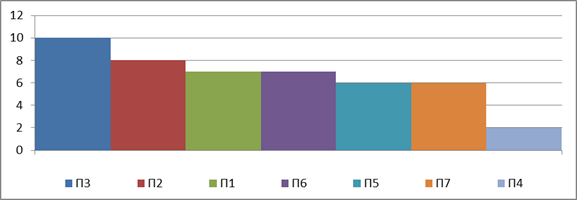 По суммарному значению связей между проблемами важнейшими оказались П3, П2, П1 и П6.