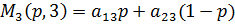 Строим эти прямые (одна точка при p=0, вторая – при p=1). Если мы перебираем чистые стратегии второго игрока (столбцы), то на графике нужно строить нижнюю огибающую ( Если же две стратегии у второго игрока, то