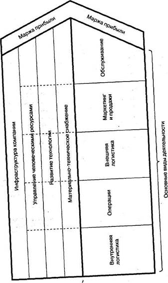 т. п.). Маржа прибыли в правой стороне рисунка демонстрирует, что ее основой является уровень управления цепочкой ценностей, а пунктирные линии на рисунке -•! J все вспомогательные виды деятельности (с одним исключением) могут быть связаны с любым основным видом деятельности, а также поддерживать всю цепочку. - Исключением является инфраструктура компании, которая относится к ценностной цепочке в целом. По М. Портеру, анализ цепочки создания ценностей позволяет оценить все виды деятельности компании, а также процесс их взаимодействия» друге другом (Porter, 1985:33). Но, по мнению автора, условием анализа выступает обязательная проверка целостности цепочки ценностей. Так, к примеру, Достижение наилучших результатов в маркетинге, в том случае, когда оно плохо сочетается с деятельностью компании, отнюдь не является конкурентным преимуществом.