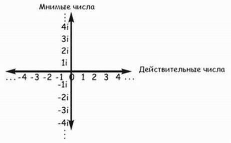 При добавлении мнимых чисел к полю действительных чисел их описательные способности увеличиваются. Получающаяся смесь действительных и мнимых чисел называется комплексными числами. Комплексные числа представляют собой сочетание действительных и мнимых чисел. Например, 3 + 4i – это комплексное число. Комплексные числа можно записывать в общем виде как a + ib, где а и b – любые действительные числа. Иными словами, а и ib – это действительная и мнимая части комплексных чисел. Точно так же, как действительные числа вместе создают поле действительных чисел, комплексные числа добавляют к этому полю новое, мнимое измерение. Мы можем изображать это комплексное поле в виде карты или графа. Подобно тому, как у наших обычных карт есть два направления или две оси, а именно направления восток-запад и север-юг, комплексные числа имеют действительную и мнимую оси, как показано на следующем рисунке.