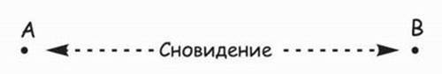 Ситуация представляет собой нечто вроде сновидения. Вечером вы ложитесь спать в точке A, а утром просыпаетесь в точке B и вспоминаете образ того, что мы называем сновидением. Мы можем наблюдать вас в точке A перед тем, как вы ложитесь в постель, и в точке B, когда вы просыпаетесь, но где вы были в промежутке? Что мы имеем в виду, когда говорим, что вы сновидели? Что происходило в промежуток времени между тем, когда вы заснули в точке A и когда вы проснулись в точке B? Вы можете использовать общепринятый термин «сновидение», но это только то, что вы вспоминаете в точке B – только то, что вы считаете или рассказываете.