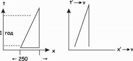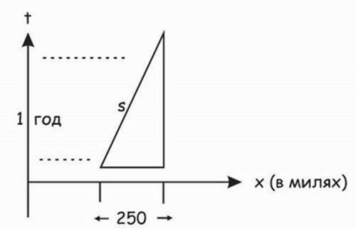 Рис. 25.7. Пространственно-временной график измерения 250 миль и 1 года