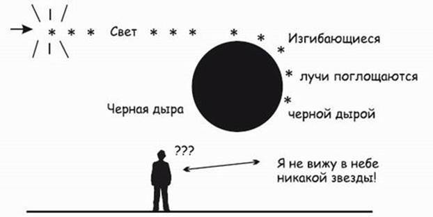 Рис. 30.5. Из-за черной дыры наблюдатель вообще не видит звезды!