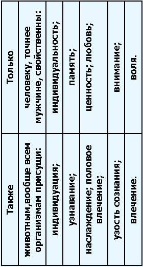 Из этой таблицы видно, что рядом с каждым отдельным свойством, присущим всему органическому, у человека находится еще одно свойство, родственное с первым, но стоящее значительно выше его. Стародавнее тенденциозное отождествление этих обоих рядов с одной стороны, необходимость строго различать отдельные члены этих рядов с Другой стороны, указывают на нечто общее, связывающее члены одного ряда с членами другого, но вместе с тем выражают и глубокое различие между ними. Прежде всего здесь создается представление, что в человеке воздвигается какая‑то надстройка из высших качеств на фундаменте соотносительных низших свойств. Это обстоятельство невольно наводит нас на мысль об одном учении индийского эзотерического буддизма, об его теории о «волнах человечества». Одновременно кажется, что на каждое исключительно животное качество накладывается в человеке другое свойство, родственное первому, но принадлежащее к высшей сфере. Это явление можно сравнить с соединениями различных колебаний между собою: упомянутые низшие качества никогда не отсутствуют в человеке, но к ним присоединяется в нем еще нечто другое. Но что представляет собою это новоприсоединенное? Чем оно отличается от другого? В чем заключаются черты сходства между ними? Приведенная таблица ясно показывает, что существует глубокое сходство между двумя членами левого и правого ряда, стоящими на одинаковой высоте. Вместе с тем из этой же таблицы отчетливо обнаруживается, что все члены каждого ряда тесно связаны между собою. Откуда это поразительное соответствие при одновременном существовании непроходимого различия? Черты, отмеченные на левой стороне таблицы, являются фундаментальными качествами, присущими всякой животной (и растительной) жизни. Это жизнь отдельных индивидуумов, но не сплоченных масс. Она проявляется как некоторое влечение для удовлетворения своих потребностей, в особенности же, как половое влечение в целях размножения рода. Индивидуальность, память, волю, любовь можно признать качествами другой жизни, которая имеет известное сходство с органической жизнью, но которая toto coelo от нее отличается. Та глубоко верная идея, с которой мы тут же встречаемся, есть идея вечной, высшей, новой жизни религий, в частности, христианства, Кроме органической, человек участвует еще в другой жизни, в духовной. Как та жизнь питается земной пищей, эта жизнь требует духовной пищи (символ тайной вечери). Как та имеет момент рождения и смерти, так и эта знает момент обоснования – нравственное возрождение человека, «воскресение», и момент гибели: окончательное погружение в безумие и преступление. Как та определяется извне причинными законами природы, так и эта связывается изнутри нормирующими императивами. Та, в органической сфере своей, целесообразна, эта, в своем бесконечном неограниченном величии, совершенна. Свойства, перечисленные в левом столбце приведенной таблицы, присущи всякой низшей форме жизни: члены правой колонны суть соответственные знаки вечной жизни. Провозвестники высшего бытия, в котором человек, и только он, принимает участие. Вечное смешение и вечно возобновляемые попытки разграничения этих обоих рядов высшей и низшей форм жизни составляют основную тему всякой истории человеческого духа: это – мотив мировой истории. В этой второй форме жизни 