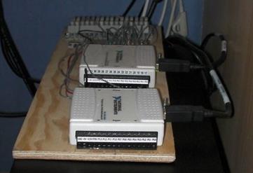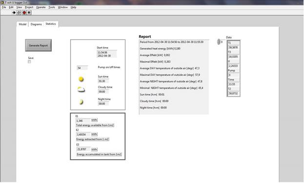 Коллекторы были установлены на южной вертикальной стене на высоте 5 этажа. Для сбора данных с датчиков и управления цирк. насосами были использованы 2 универсальных I/O модуля NI-USB 6008. Автоматизированная измерительная система была написана с системе Labview.