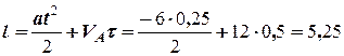 Тоді, остаточно, для координати тіла та його швидкості на першому етапі руху маємо: