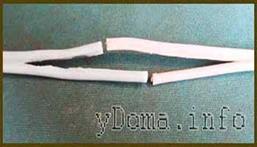 Срастив две пары двойных проводов описанным ниже способом, удается получить компактное и красивее соединение скруткой как одножильных, так и многожильных пар проводников. Этот способ скрутки может быть с успехом применен, например, при сращивании пере Рисунок 7.Сращивание проводов. битых проводов в стене, наращивания провода при переносе розетки или выключателя с одного места стены на другое, при ремонте или наращивании длины кабеля переноски. Для получения надежного и красивого соединения необходимо подогнать длины концов проводников со сдвигом на 2-3 см.