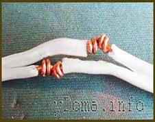С концов проводов снять изоляцию.(Рисунок 8) Выполнить по парную скрутку проводников. При данном виде скрутки достаточно для одножильного провода двух витков, для многожильного – пяти.(Рисунок 9) Если планируется прятать скрутку под штукатурку или в другом не доступном месте, то скрутки нужно обязательно пропаять.(Рисунок 10)