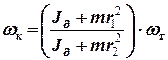 Прирівнявши вирази які визначають закон збереження - компоненти моменту імпульсу механічної системи отримуємо вираз для розрахунку кінцевої кутової швидкості диску