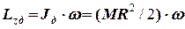 Момент імпульсу твердого тіла (диску), момент інерції якого відносно осі та який обертається навколо неї з кутовою швидкістю , відомий, тому