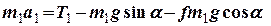 Розв’язок. Будемо вважати, що тіло 1 починає рух догори похилої площини і на момент, коли воно пройде шлях S 1, має прискорення .
