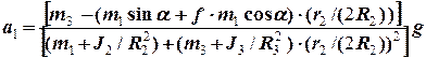 Якщо в результаті розрахунків отримуємо , то потрібно змінити напрям руху тіл 1 та 3. При цьому у формули (6) – (9) необхідно внести відповідні зміни щодо напряму руху тіл, що приведе до наступних змін у кінцевій формулі (19): в чисельнику потрібно змінити знаки при масах тіл 1 та 3 і змінити знак при коефіцієнті тертя f, бо сила тертя ковзання завжди напрямлена проти напряму руху тіла і тоді для прискорення тіла 1 отримуємо