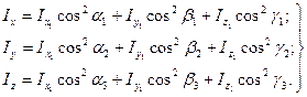 Обчислення моментiв iнерцiї через головнi моменти iнерцiї