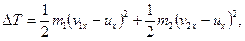 Рівняння (20.41) виражає таку теорему: втрачена при ударі кінетична енергія дорівнює Справді, ліва частина рівняння (20.41) - це різниця значень суми кінетичних енергій тіл до і після удару, а в правій частині стоять вирази, які за своєю структурою збігаються зі значеннями кінетичних енергій для тих швидкостей, які тіла втрачають при ударі. Для зручності обчислень формулу (20.41) можна переписати так: