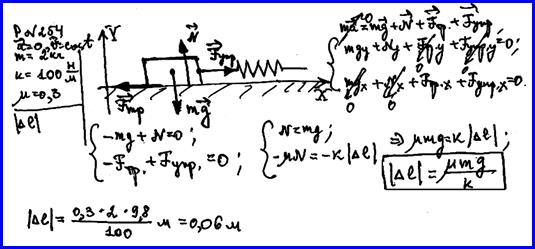 Деревянный брусок массой 2 кг тянут по деревянной доске, расположенной горизонтально, с помощью пружины жёсткостью 100 Н / м. Коэффициент трения равен 0,3. Найти удлинение пружины.