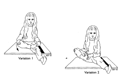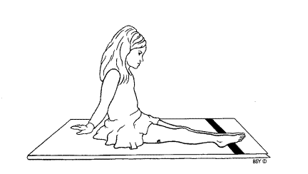 Займите исходное положение. Осознайте свои пальцы. Расправьте их насколько это возможно. Расслабьтесь, пальцы опять вместе. Медленно повторите 10 раз. Практическая заметка: Старайтесь избежать судорог, сильно не напрягайтесь. Если у ребенка не получается расправить пальцы, он может помочь себе руками. Практика 3: Гулф Наман (растягивание лодыжки) Займите исходное положение. Осознайте свои лодыжки. Медленно потяните лодыжку вперед насколько возможно. Теперь назад, как только можно. Повторите 10 раз, медленно, в ровном ритме.
