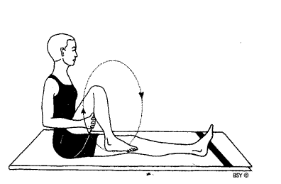 Практика 7: Джану Чакра (вращение коленом) Займите исходное положение с вытянутыми ногами. Согните правую ногу в колене. Обхватите руками бедро, так чтобы оно упиралась в туловище. Осознайте свое колено. Вращайте коленом по часовой стрелке 10 раз, и 10 раз против часовой. Вернитесь в исходное положение и повторите с левой ногой.