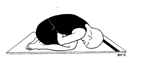 Вариант 1: Сядьте в ваджрасану, руки держите за спиной, обхватив правое запястье левой ладонью. Расслабьтесь и осознайте свое тело. Медленно и глубоко вдохните. Выдыхая, медленно наклонитесь вперед, прислоняясь грудью к ногам и касаясь лбом пола напротив колен. Дышите нормально, сохраняя такое положение 10 секунд. Глубоко вдохните, медленно поднимая туловище в прямое положение. Повторите упражнение до 10 раз. Вариант 2: Сядьте в ваджрасану, упритесь кулаками в нижнюю часть живота. Глубоко вдохните. Выдыхая, медленно наклонитесь вперед, прижимаясь грудью к ногам, а лбом к полу напротив коленей. Дышите нормально, сохраняя такое положение 10 секунд.