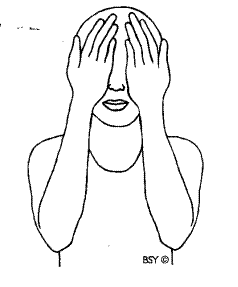 Потрите руки друг о друга пока они не станут горячими. Нежно положите ладони на глаза. Ощутите, как энергия ваших рук переходит к глазам. Продолжайте сидеть в данном положении, пока тепло от ладоней не перейдет к глазам. Держите глаза закрытыми. Повторите упражнение не менее 3 раз.