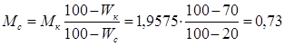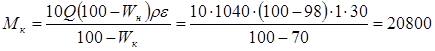 где Мк – количество кека фактической влажности, Мк = 1957,5 кг/сут = 1,9575 т/сут; Wк – влажность кека, подаваемого на сушку, Wк = 70 %. Количество влаги в кеке, подаваемом на сушку, т/сут: