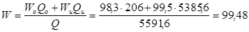 Усредненная влажность смеси осадка из первичных отстойников и избыточного активного ила, %: