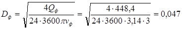 где vф – скорость движения фугата в трубопроводе, vф = 3 м/с. Принимаем Dф = 0,05 м. Диаметр трубопровода отвода фугата от одной центрифуги в резервуар-накопитель, м.: