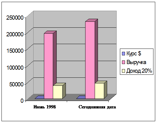 10. На основе проведенных расчетов создайте новую таблицу по приведенному ниже образцу (рис.62)и с помощью команды меню ВСТАВКА→Диаграммапостройте объемную гистограмму (рис.63.)