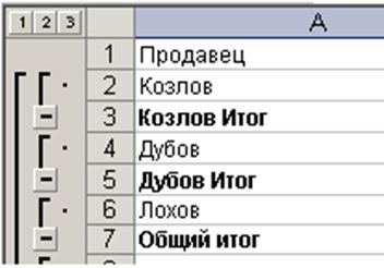 Автоматическое подведение общих и промежуточных итогов. Работа со структурой таблицы