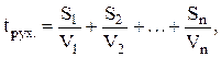 де V1, V2, Vn – швидкість руху колони батареї по ділянках S1, S2, Sn – маршрути з різними умовами;
