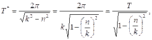 Рисунок 2. Множитель е-nt указывает на то, что амплитуда затухающих колебаний с течением времени уменьшается. Циклической частотой затухающих колебаний называется величина Тогда период затухающих колебаний