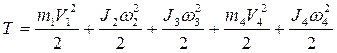 Вычислим кинетическую энергию системы как сумму кинетических энергий тел, входящих в систему Т = Т1 + Т2 + Т3 + Т4 (2.3) Кинетическая энергия груза 1, движущегося поступательно со скоростью V 1
