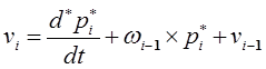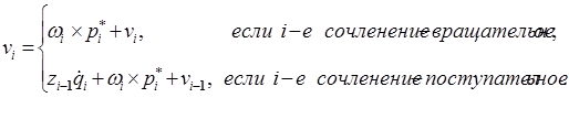 (12-17) Используя равенства (12-16) и (12-7), выражение (12-6) для линейной скорости i- го звена относительно базовой системы координат можно представить в виде: