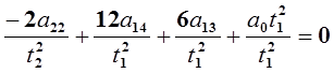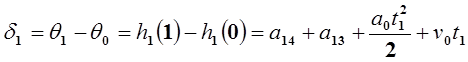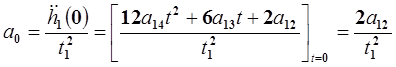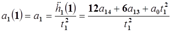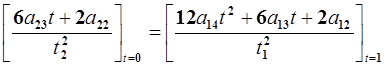 2. Для t =1 (конечная точка данного участка траектории). На этом участке действует условие непрерывности по скорости и ускорению, т.е. скорость и ускорение в конце первого участка траектории должны совпадать со скоростью и ускорением в начале второго участка. В конце первого участка скорость и ускорение соответственно равны: