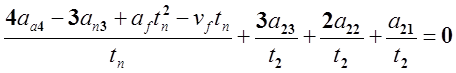 и, следовательно, Поскольку скорость и ускорение в этой точке должны совпадать соответственно со скоростью и ускорением в конечной точке предыдущего участка траектории, то должны выполняться равенства: