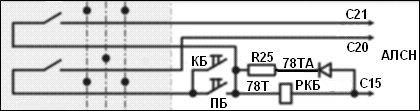 РКБ включившись, через схему АЛСН разрывает цепь питания катушки реле запрета РЗ, которая в свою очередь своей блокировкой в пр15МВ-3 подготавливает цепь питания 3 поездного провода. Для приведения поезда в движение необходимо: