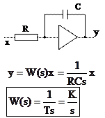 Выходная величина y пропорциональна интегралу от входной величины х. этим и объясняется название звена. Такое звено является идеализацией реальных интегрирующих звеньев. Примеры: