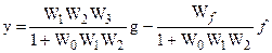 y = W1(s)z = W1(s)(r+v) = W1(s)W2(s)e + W f (s) f = W f (s) f + W1(s)W2(s)[W3(s)g – W0(s)y] = = W f (s) f + W1(s)W2(s)W3(s)g - W1(s)W2(s)W0(s)y.